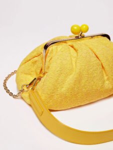 يقع التأثير المرئي العام لهذا الإصدار الجديد من حقيبة Pasticcino المرحة من Weekend Max Mara، والتي سميت على اسم الكلمة الإيطالية التي تعني “معجنات صغيرة” على الرومانسية الغنية التي تتجسّد في النسيج المستخدم، حيث يمكن ارتداء الحقيبة على مدار السنة، بدءاً من النهار إلى آخر الليل.