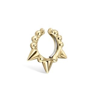 تم تصويرها وهي ترتدي الكفة المحببة الثلاثية القصيرة سبايك تاش في حاجزها.