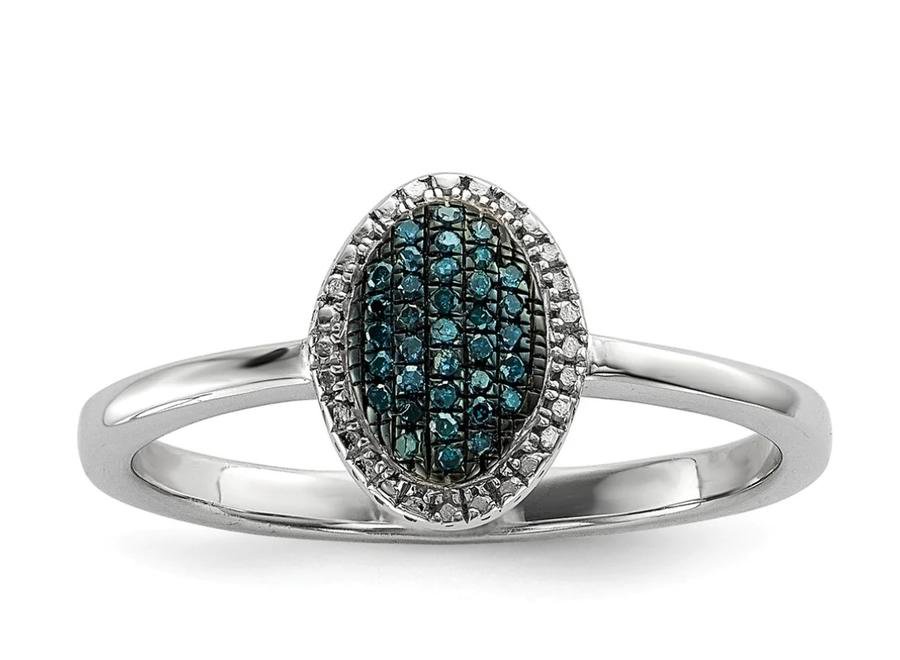 الألماس الأزرق هو حجر كريم ونوع طبيعي من الماس يتمتع بدرجة من زُرقة اللون الناتجة عن وجود عنصر البورون في الهيكل البلوري الكربوني للماس، ولتتألقي به اخترنا لك من علامة The Black bow خاتماً بيضاوياً من الفضة الإسترليني مرصعاً بالألماس الأزرق والأبيض، ليشكل تألق النهار وأناقة الليل، ويكون مثالياً لأناقتك في أي مناسبة، ويتميز بطبقة نهائية مطلية بالروديوم لتقليل البقع ولمنحك لمسك مثالية فخمة مع كل إطلالة.