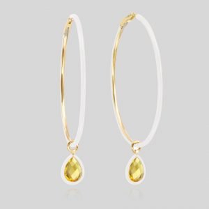 بالإضافة إلى ذلك، أضافت نينا بعض أحجار السيترين المُشرقة إلى مجموعة Artist المطليّة بالمينا الأبيض، من وحي ألوان فندق Hotel Il Pellicano الشهير في توسكانا حيث أمضت أجمل أيّام الصيف في أكثر من سنة. سوف يتجلّى المزيج المميّز بين الأبيض والأصفر في خواتم Flip بحجمَين وأقراط دائرية بثلاثة أحجام تتدلّى منها حُلى Flip. تقول نينا عن هذه التصاميم: “يتميّز فندق Pellicano بأسلوب ساحر وبعيد عن المغالاة ألهمني على ابتكار هذه التصاميم المُشرقة من مجموعة Artist”.