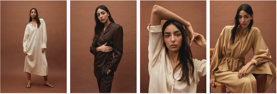 في مجموعة رمضان الجديدة، يسود الأسلوب البسيط والمريح من خلال الملابس المتنوعة والمقاومة، مما يجعلها مثالية لإضفاء مظهر كاجوال وغير رسمي أثناء النهار والليل. الألوان المحايدة هي أساس هذا العرض، ويتم إنتاجها من الألياف الطبيعية والأقمشة المنسوجة. هناك أيضًا مساحة لبعض المطبوعات الناعمة مع لمسة غير متماثلة، لتوفير الحركة وللزهرة العضوية. يتم إبراز التفاصيل الخاصة مثل الأكمام البالونية أو الطيات التي تتكيف مع الاتجاهات الحالية في الفساتين والبدل.