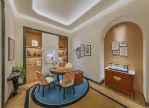 وفي المتجر الجديد أيضاً، سيختبر العملاء تجربة جديدة أكثر خصوصية وذلك بفضل الصالون الحصري الخاص بكبار الشخصيات والمزيّن بتوليفة من الأنماط الهندسية والعضوية. كما تمثّل الرسوم المعروضة على الجدران العلاقة القوية التي تربط دار بوشرون بالطبيعة والتي كانت مصدر الإلهام الأساس بالنسبة إلى فريدريك بوشرون حين ابتكر عام 1879 عقد علامة الاستفهام الشهير Question Mark. وكما نستدلّ من رسوم أحدث مجموعة من المجوهرات الراقية المعروضة أيضاً على الجدران، فإن كلير شوان تكرّم رؤيته للطبيعة وتتخطّى الحدود النمطية السائدة في عالم المجوهرات الراقية. حيث قدّمت عام 2018 بتلات الزهور الطبيعية إلى عالم المجوهرات الراقية من خلال خواتم Fleur Eternelles التي تمتاز بشاعريّتها المفرطة وحسّ عالٍ من الابتكار، وهو إنجاز تحقّق بعد سنوات عديدة من الأبحاث المبنيّة على تحدّ إبداعي مميّز يتخطّى حدود المألوف. ويهدف صالون كبار الشخصيات إلى تشكيل فضاء حميم وخاصّ للضيوف يتيح لهم تقدير تاريخ الدار، وثقافتها، وروحها الإبداعية الحرّة، مع الاستمتاع في الوقت ذاته بالخدمة المميّزة.