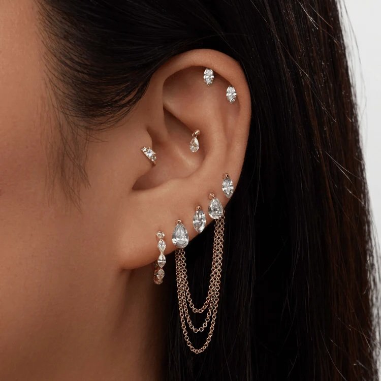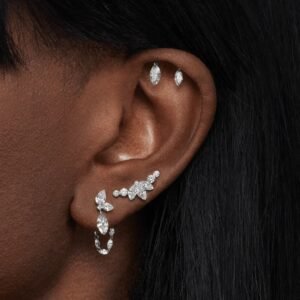 تُشكّل تصاميم لوتس وإيكو وبلوم حديقة من ألماس الماركيز على الأذن، مما يخلق إحساسًا بالانسيابية الطبيعية والبريق المتداخل. صُمّم كل تصميم ليناسب الأذن بسلاسة، مما يسمح للألماس بمتابعة منحنياتها الطبيعية، مع توفير خيارات متعددة لإطلالات أنيقة وجريئة.