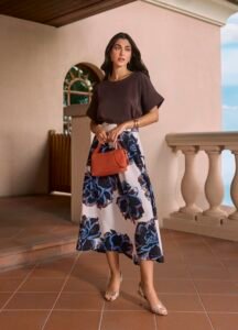 يحتفي هذا الموسم بانسيابية التنسيق وسهولته؛ حيث تتصدر الأطقم المتناسقة المشهد من خلال إطلالات مثل قميص بلون الشوكولاتة الغني مع بنطال واسع الساقين، لمظهر أنيق يليق بإطلالات النهار والمساء معاً. وتبقى الفساتين الميدي الانسيابية عنصراً محورياً في التشكيلة؛ حيث تزدان بنقشات زهورية جريئة بدرجات من نفس اللون، إلى جانب درجات الألوان الدافئة الغنية بدفء الشمس مثل التيراكوتا. أما القصَّات، فتأتي ناعمة وانسيابية، يبرزها خصر محدد، وحواف بطبقات متدرجة، وتصاميم بلا أكمام، صُممت جميعها لتمنح إحساساً بالراحة والخفة في أجواء الطقس الدافئ.
