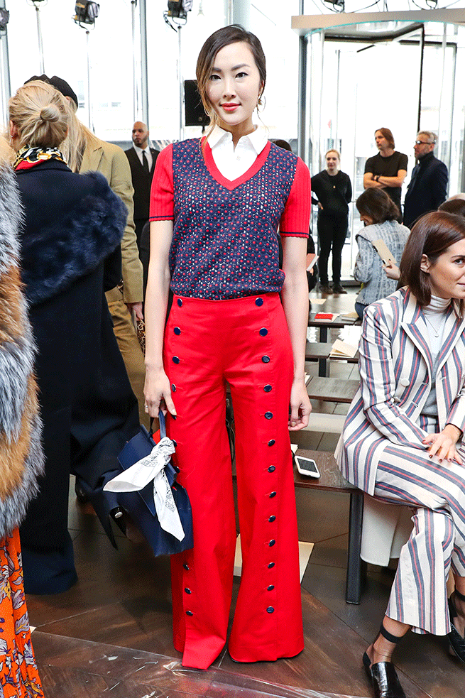 تمزج المجموعة بين العناصر الذكورية والأتثوية، فتجسد سحر وأناقة منطقة فيلادلفيا وهوائها الطلق. بلوزة ذات عقدة أمامية كبيرة الحجم منسقة مع سروال مستوحى من الملابس الرجالية ولكن بلمساتٍ فيها الكثير من الأناقة، وسترة بومبر فوق تنورة ذات ثنيات.
