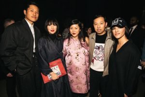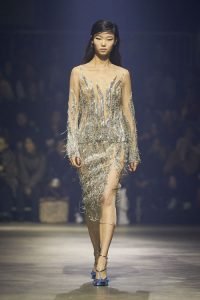 بالنسبة للسيّدات توجّهنا نحو التقليدي والتقني، عارضين مجموعة غنيّة بالألوان المغبرّة والطبعات النابضة بالحياة. يتم ارتداء فساتين من ساتان الحرير في جاكار زهور الكرز جنباً إلى جنب مع طقم من كنزة وقميص تم تحديثهم بحياكة شفّافة من النايلون.