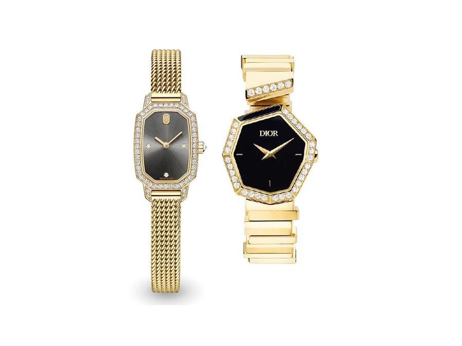 اخترنا لك من ديور ساعة مصنوعة من الذهب الأصفر عيار 18 قيراطًا، بإطار مرصع بـ 31 ماسة، وترصيع من أونيكس؛ ومرصعة بحجر عقيق يماني، ذهب أصفر عيار 18 ملمع عقارب دوفين؛ مع حلقات غير متماثلة من الذهب الأصفر عيار 18 قيراطًا، وصلة نهاية مرصعة بستة ماسات؛ وسوار إضافي من التمساح الأسود قابل للتبديل مع تشطيب من الذهب الأصفر عيار 18 قيراطًا، ومرصع بستة ماسات.