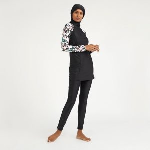 - يمكنك اختيار التصاميم الأنثوية بظلال مميزة توفر الحشمة والراحة، لطلة عملية وعصرية. اختاري البوركيني المطبوع الجذاب مع الجوارب الضيقة المتوفرة بسعر 95 درهم.وتعتبر هذه القطعة اختيار مناسب للسباحة في عطلة نهاية الأسبوع، وسيمكنك هذا البوركيني المطبوع من ممارسة الرياضة بسهولة والاستمتاع بجلسات السباحة بينما تحميكي من أشعة الشمس الحارقة. كما تتميز بغطاء الرأس، وسروال ضيق مزوداً بحزام خصر مرن لتمكينك من تعديل المقاس، مع بعض الأحذية أو المنزلقات الرائعة على الشاطئ.
