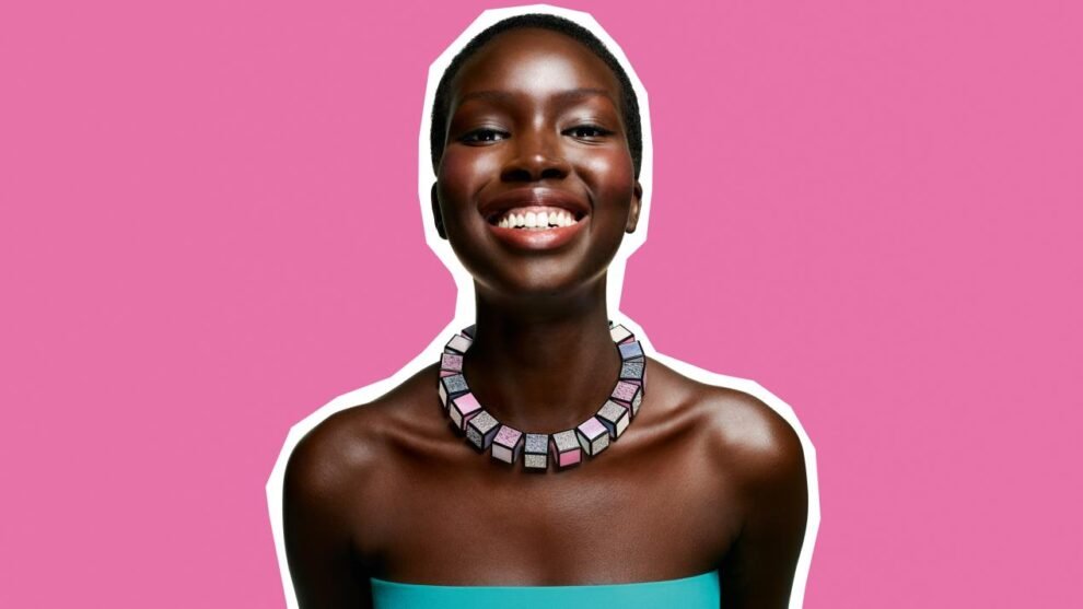 عقد بحلقات ضخمة ومترابطة، يغطّي منطقة الصدر بأكملها. مثل عنصر من كتاب للرسوم المتحرّكة يتقاطع مع عالم الواقع، فيفرض جماليّاته الكرتونيّة من خلال قطعة من المجوهرات الراقية مسطّحة وخفيفة: إنها الخدعة البصرية المطلقة.