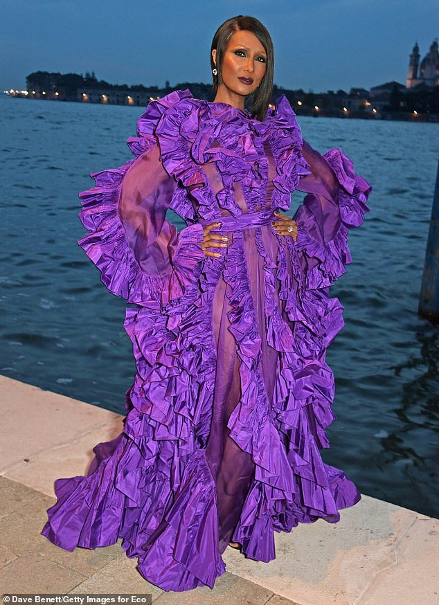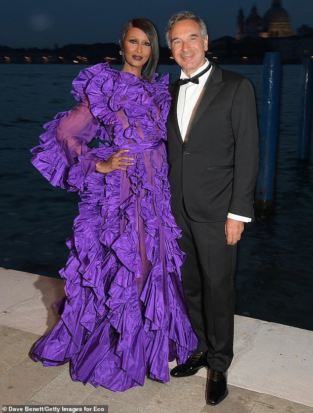 تألقت العارضة والممثلة Iman Bowie 64 سنة ، رائعة في ثوب أرجواني مكشكش من فالنتينو وهي تتخيل مع كولين فيرث وزوجته ليفيا بعد حصولها على جائزة فرانكا سوزاني قبل مهرجان البندقية السينمائي السادس والستين.