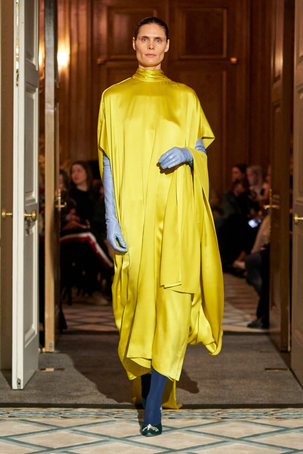 ومن أجل دعم الأعمال الفنية الغنية للعلامة التجارية، يتم تفسير التعبيرية التجريدية حيث يتحول الحرير الفاخر إلى لوحات قماشية لتقنيات الطباعة الاستكشافية التي تخلق أوهامًا للصور الظلية ذات الطبقات. تم أخذ الحجم إلى أقصى الحدود ودمجه مع تشكيلات فنية فائقة الأنوثة من الأشكال الدائرية المتكررة في جميع أنحاء المجموعة. تظل الخياطة والملابس الخارجية قوية بينما يتم تقديم الهياكل الجديدة من خلال خطوط الخصر المحددة بشكل متزايد.